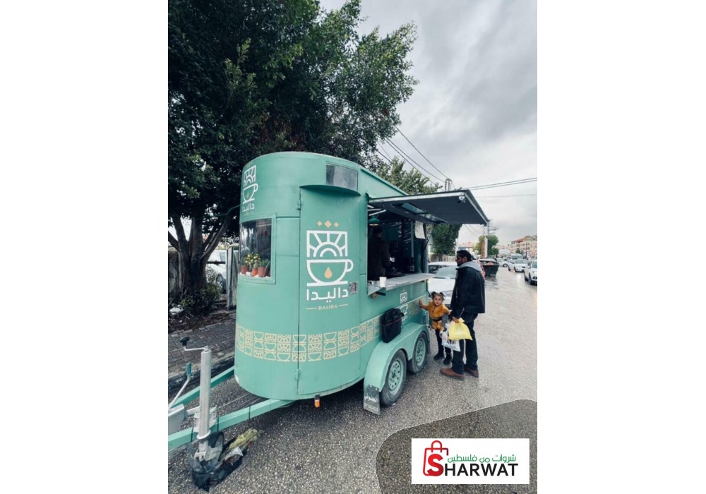 كشك مرخص مركبة مع لوحة خاصة من سلطة الترخيص الفلسطينية.