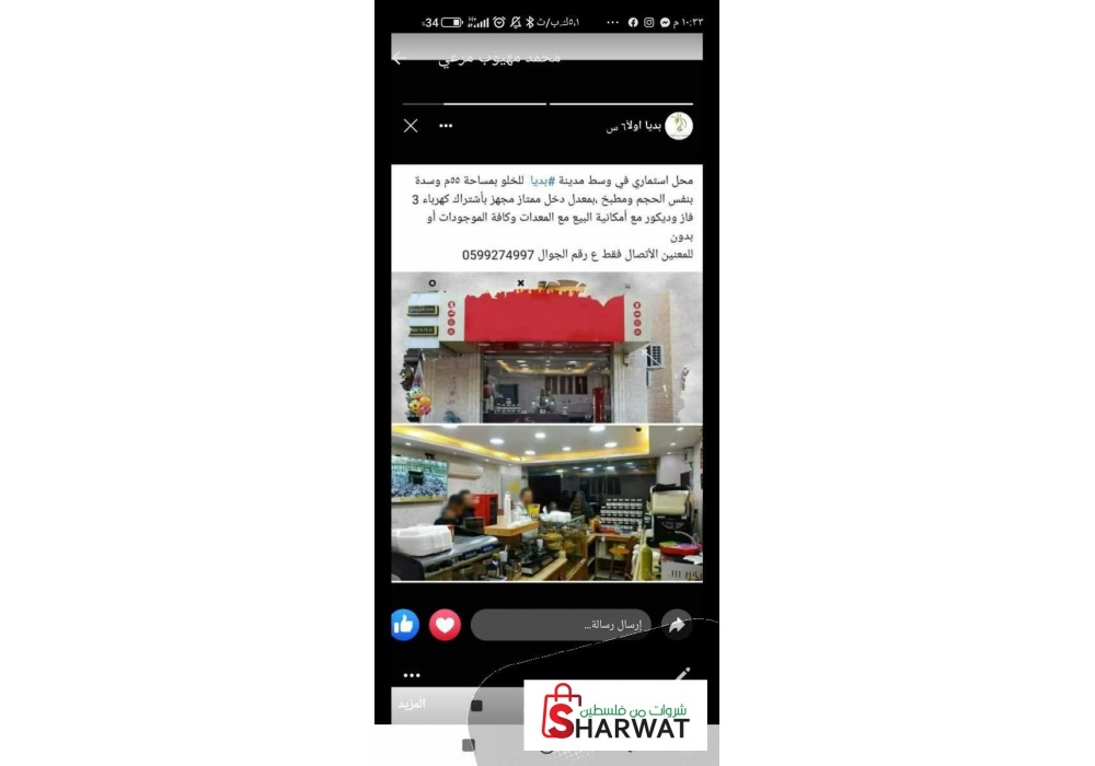 المحل موقعو مميز بوسط مدينة بديا _سلفيت