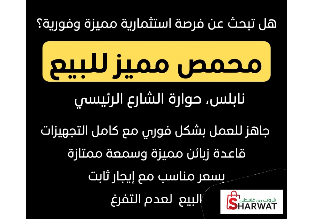 للبيع - محمص مميز ومجهز بالكامل حوارة الشارع الرئيسي