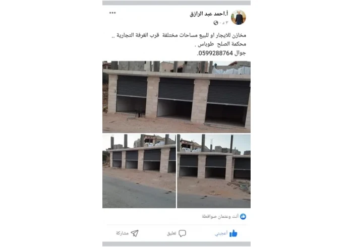 مخزن مشطب للبيع على شارع رئيسي قرب محكمة الصلح الجديده..طوباس
