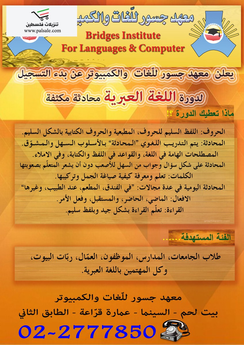 بادر بالإتصال الآن........... أو تفضلوا بزيارتنا في موقع معهد جسور في عمارة قراعة الطابق ألثاني.......