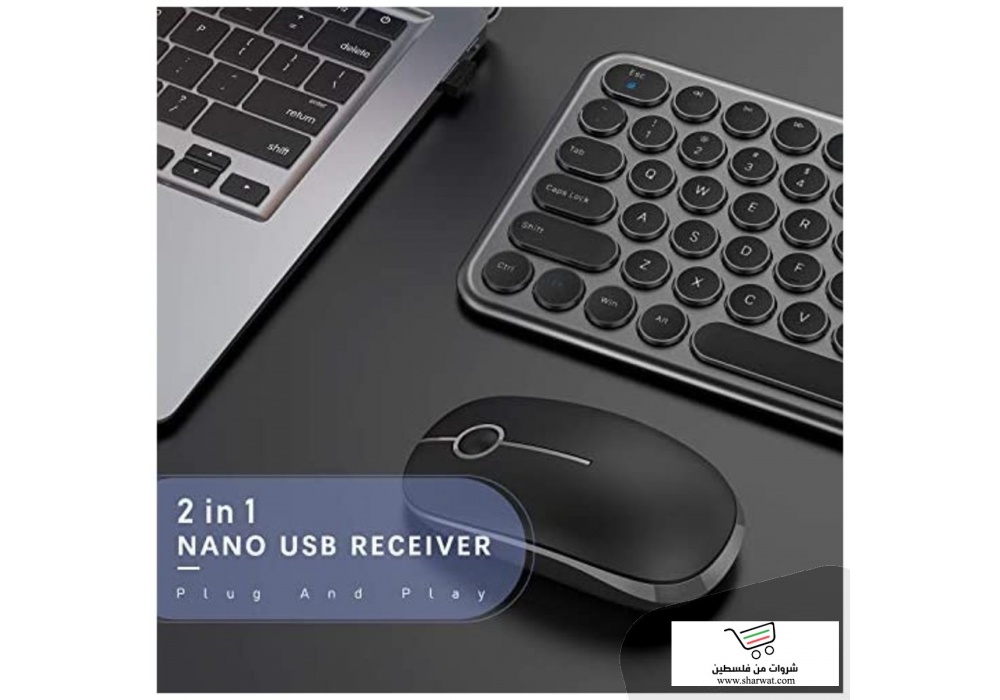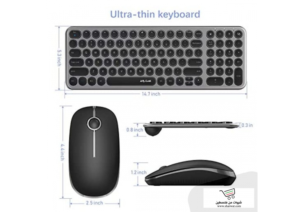 Wireless Keyboard and Mouse Combo, Jelly Comb 2.4G Slim Ergonomic Quiet Keyboard and Mouse with Round Keys for Windows, Laptop, PC, Notebook-Black and Gray