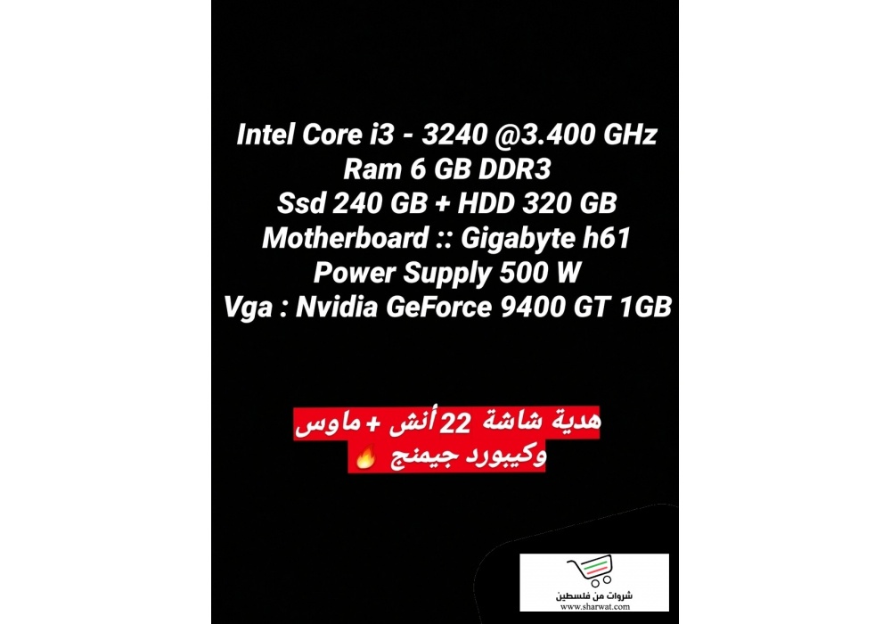 كمبيوتر i3 للألعاب بحاله ممتازه جداً ،، وسعر خرافي مع هدايآ ،، المواصفآت بالصوره **✔