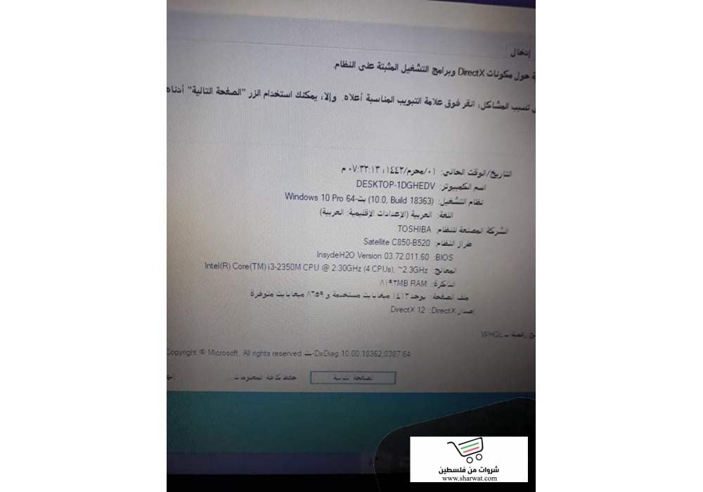 الجهاز toshiba satellite c850-B520