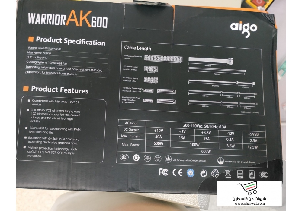 مزود طاقة600w من شركة aigo العالمية نوع Ak600