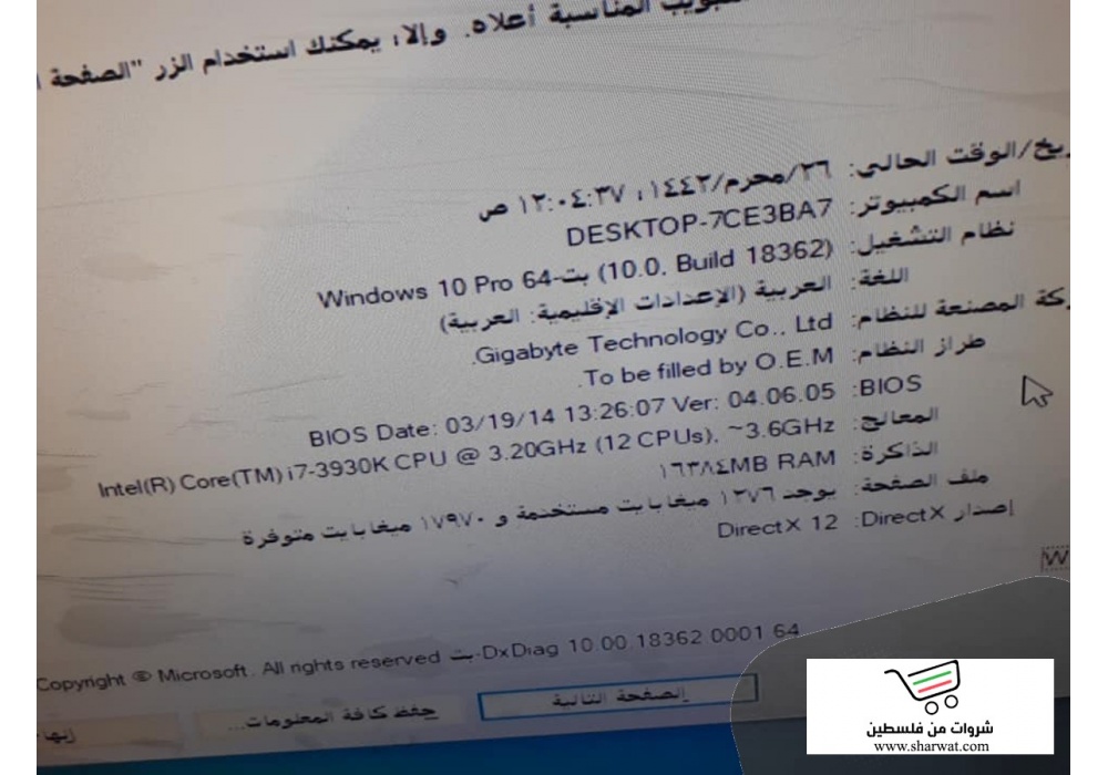 **المعالج core i7 -3930K 3.20GHz~3.6GHz (12cpu) كسر سرعة ، الكاش 12