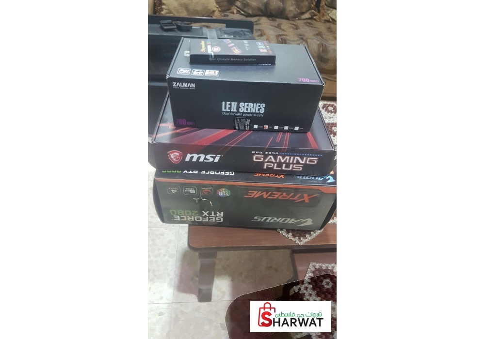كراتين المذبورد والرامات وكرت الشاشه والبور والهاردسك موجودات