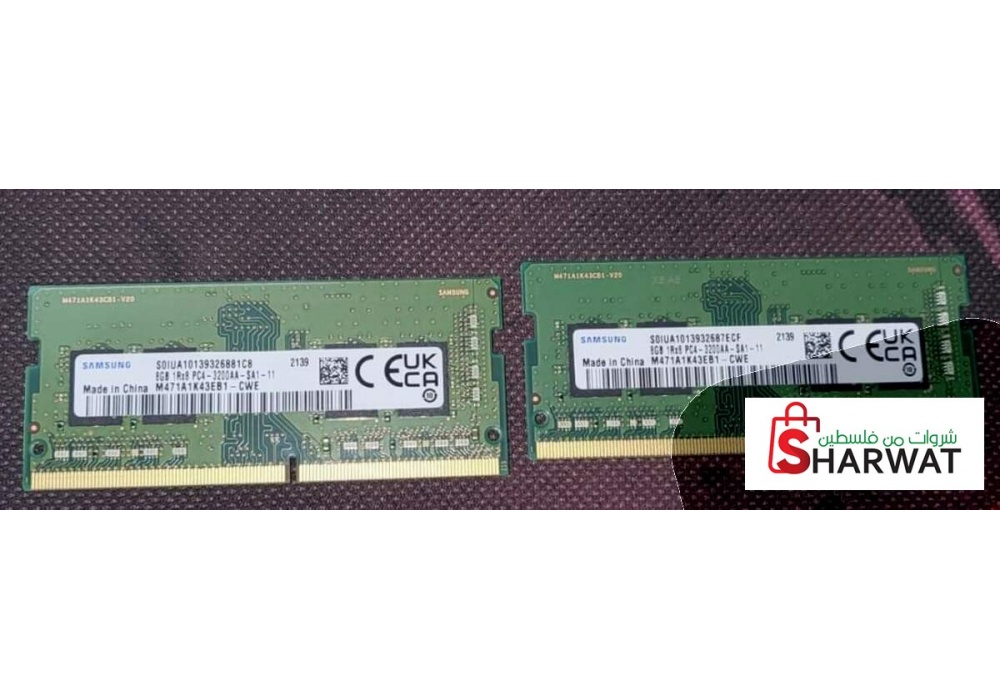 حبتين رامات لابتوب DDR4 3200Mhz كل قطعة 8 جيجا من نوع سامسونج