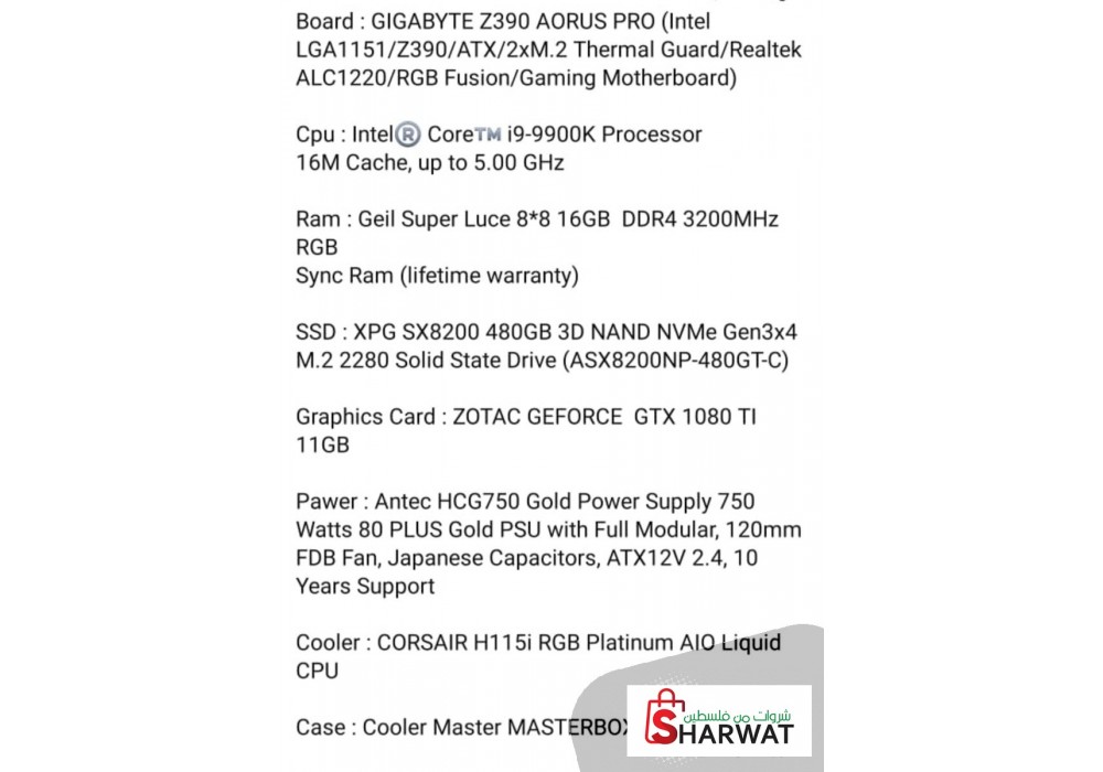جهاز ps Core i9-9900k مواصفات ممتازة