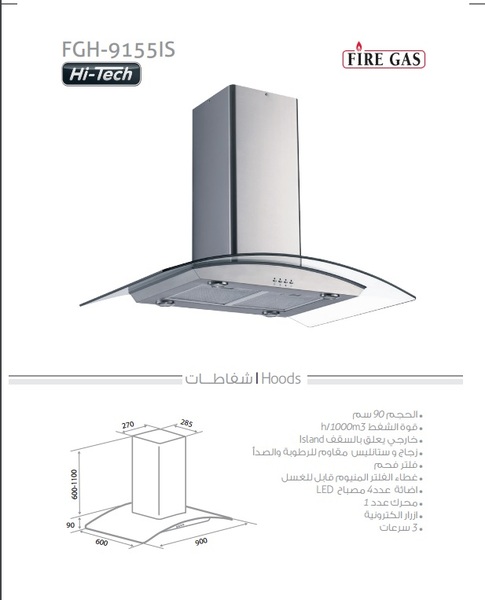 شفاط غاز 90 سم - غير مستعمل (جديد بدون كرتون)