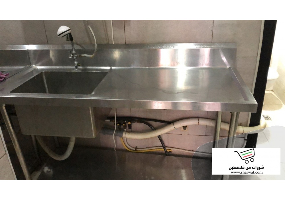 ٤طاولات ستانلس قياسات مختلفة من ضمنها مجلى مع حنفية