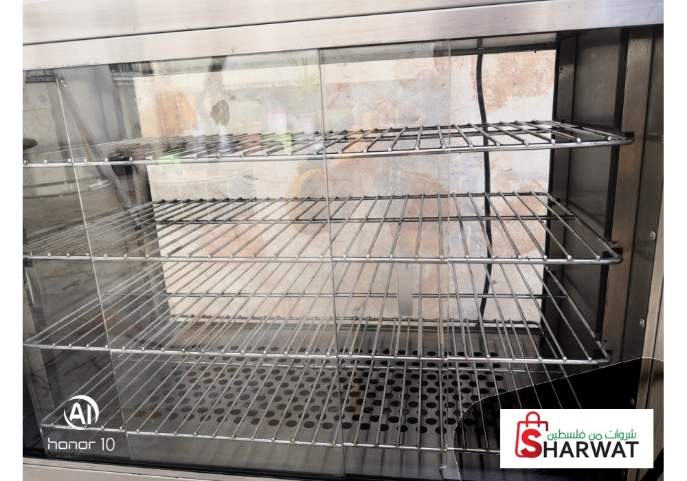 له ٤ رفوف وزجاج من الجهتين