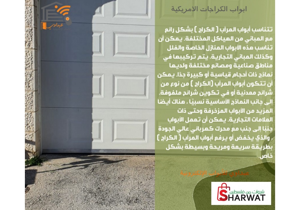 تتميز ابواب الكراجات الاتوماتيكية الامريكية بالشكل الجميل وبالهدوء عند التشغيل وبالقوة والمتانة .وتتوفر بأكثر من تصميم مختلف وجميل ترضي كل الاذواق وتتميز بالمظهر الجميل وبالمتانة الفولاذية وهذة الابواب محشوة بطبقة عزل قوية لتعطي زيادة في الامان ومقاومة الاحوال الجوية المختلفة .
