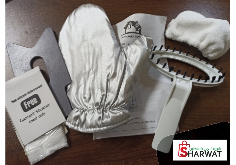 يحتوي على قطعة تستخدم لكوي البرادي والمفروشات وقفاز وغيرها.