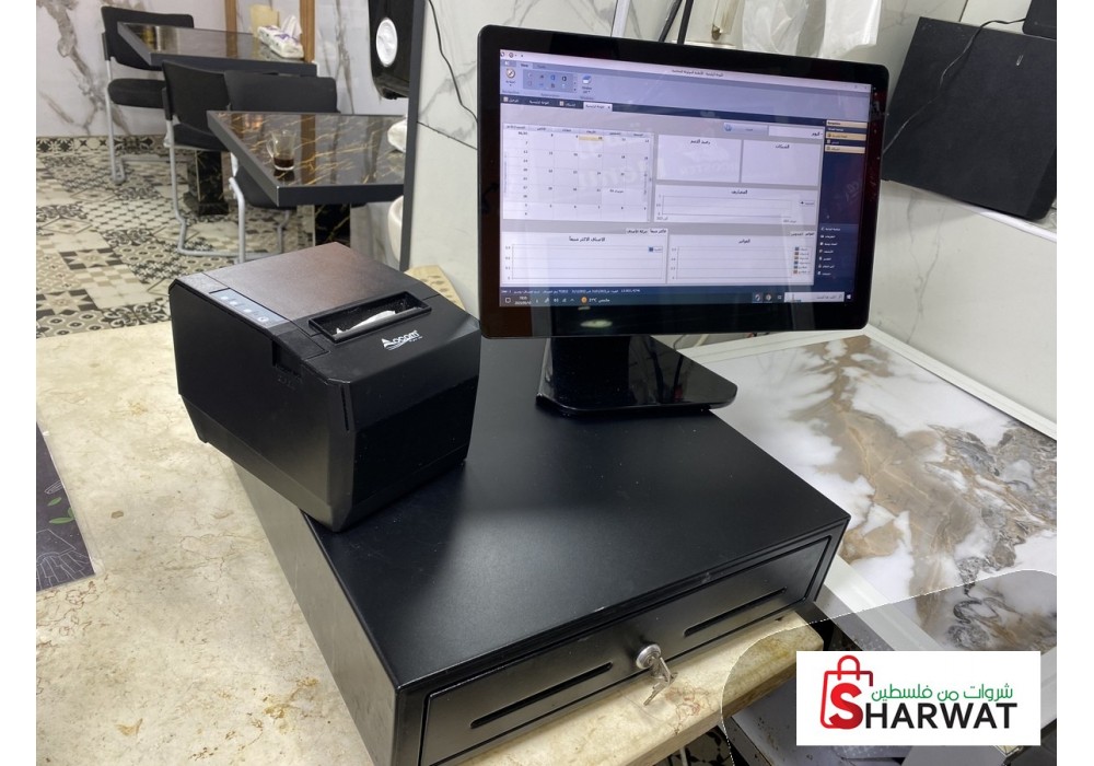مع طابعة فواتير وجرار كاش يعمل ع البرنامج