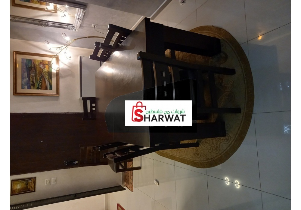 طاولة سفرة خشب زان ٨ مقاعد لون بني مع جك مسنن للتوسيع بحالة ممتازة بسعر ١٠٠٠ شيكل