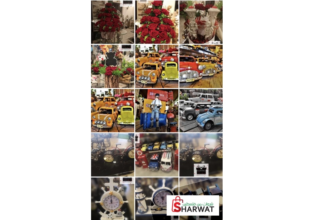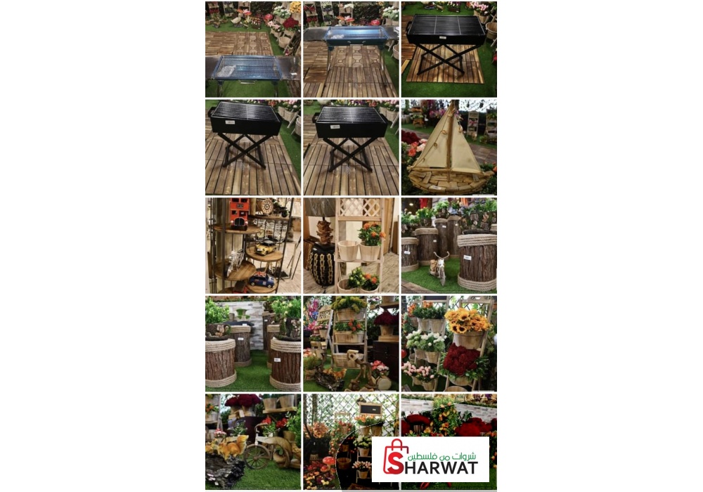 تحف و هدايا ، ساعات حائط و ساعات يدّ ، و جزادين ستاتي و رجالي و اطفال ، مستلزمات حدائق، قواوير زريعة، ادوات الكترونية ، حزامات، سور آيات قرآنية، مستلزمات مطبخ، براويز، نثريات خشبية و حجرية و حديدية، مرايات زجاجية، سياج خشب ، سياج ورود و انواع عديدة أخرى