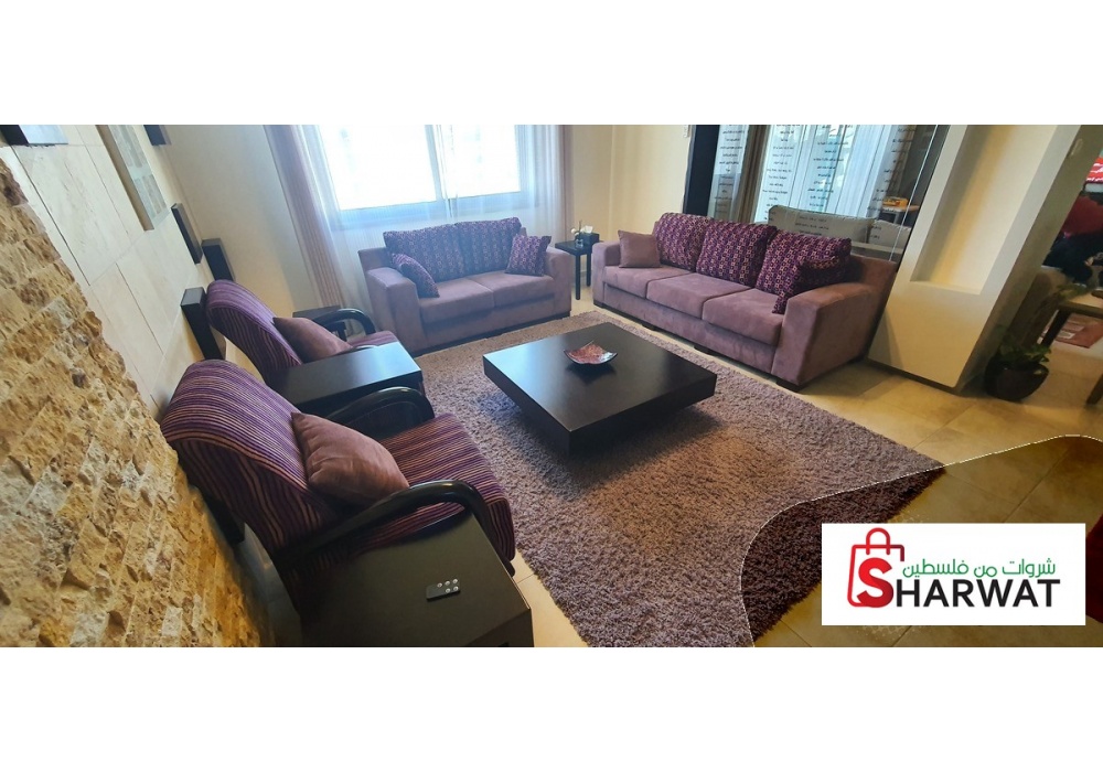 طقم كنب مع طاولة وسط كبيرة و طاولات صغيرة