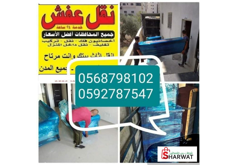 فك وتركيب غرف نوم جميع الانواع تغليف العفش والحفاظ عله فريق خاص للعمل شاحنات مغلقه ومنوعه لنفل الأثاث فك تريات فك مكيفات فك الستائر فك شاشات التلفزيون نعمل بكافه محافظات الضفه الغربيه للإستفسار 0568798102