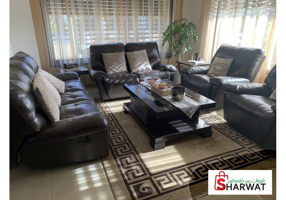 طقم كنب جلد مستعمل بحالة جيدة جدا