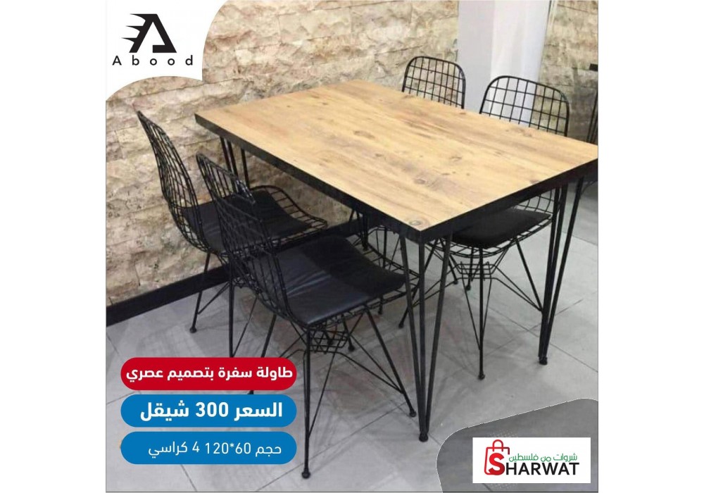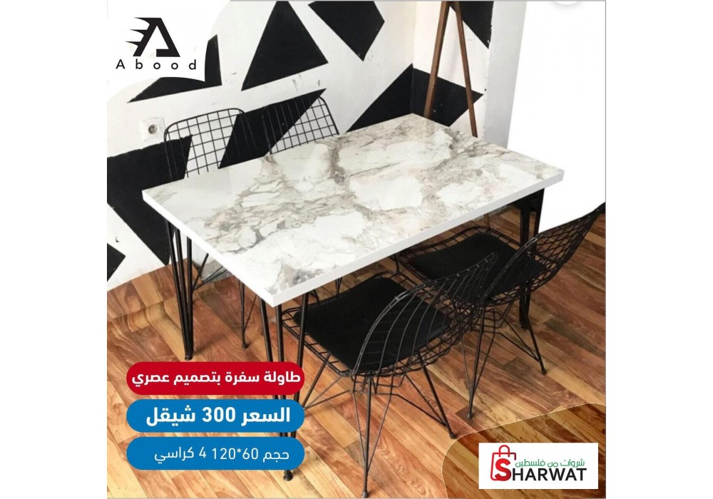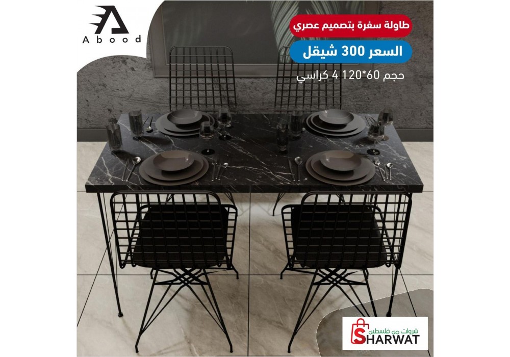 الان لدى AboodStore طاولات سفرة بتصميم عصري مع ٤ كراسي بسعر مميز وحصري فقط ٣٠٠ شيكل