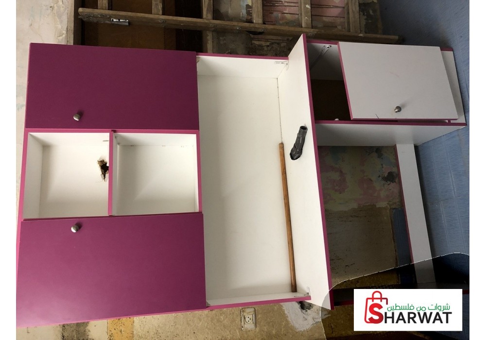 غرفة أطفال مكونة من تختين خزانة ملابس مكتبة