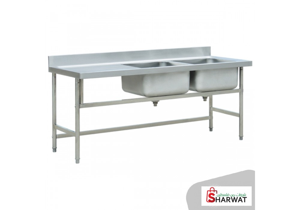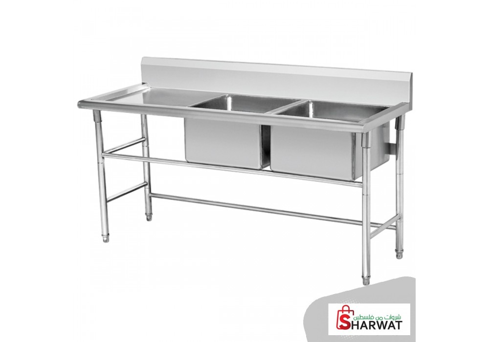 مجلى ستانلس ستيل مستعمل بحالة جيدة حوضين شغل مطاعم وكافيهات للبيع