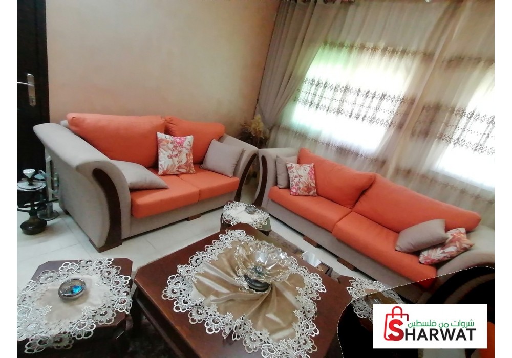 طقم كنب صالون ٩ مقاعد مستعمل استعمال خفيف مع طاوله وسط و٤ اسكملات خشب زان