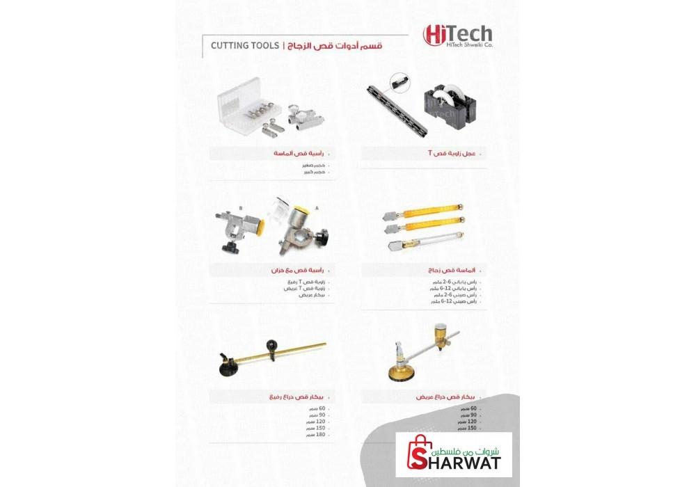 قسم أدوات قص الزجاج يحتوي ما يلزم العاملين في مجال الزجاج، من: