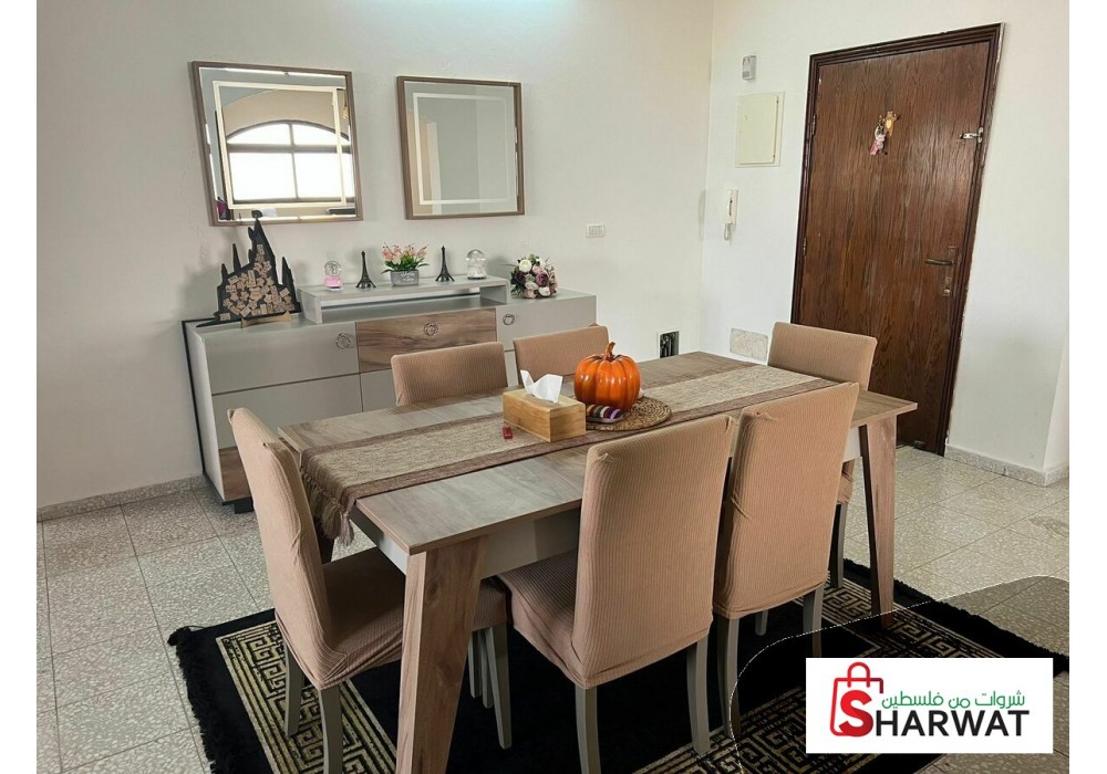 الأثاث يشمل غرفة نوم (تخت وبيرو (عدد اثنين) + كومادينات + مراي كبير + خزانة كبيرة 4 أبواب)