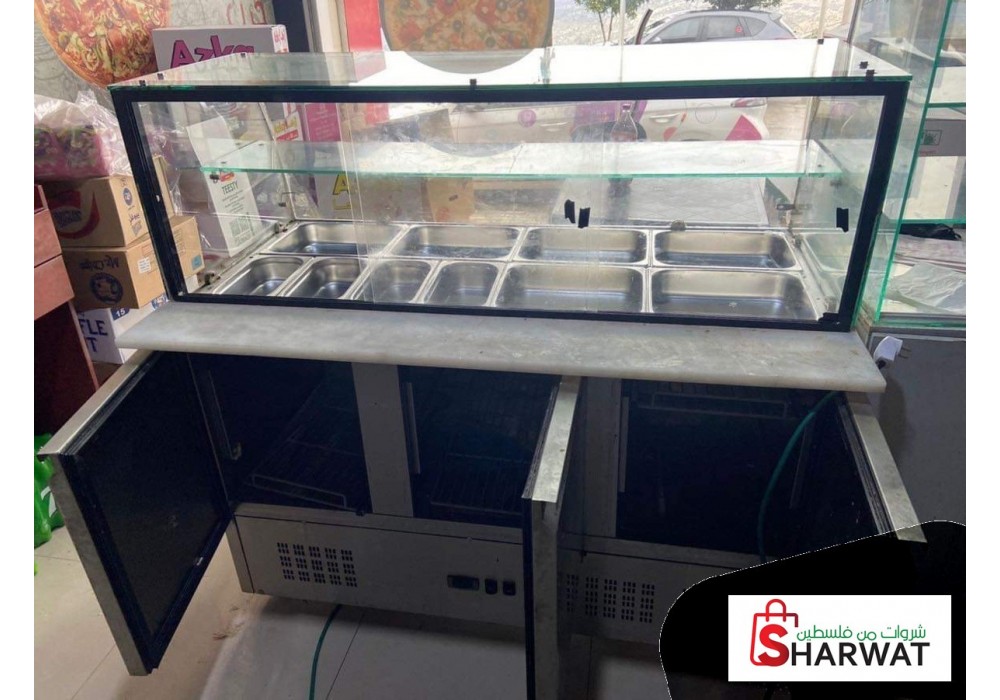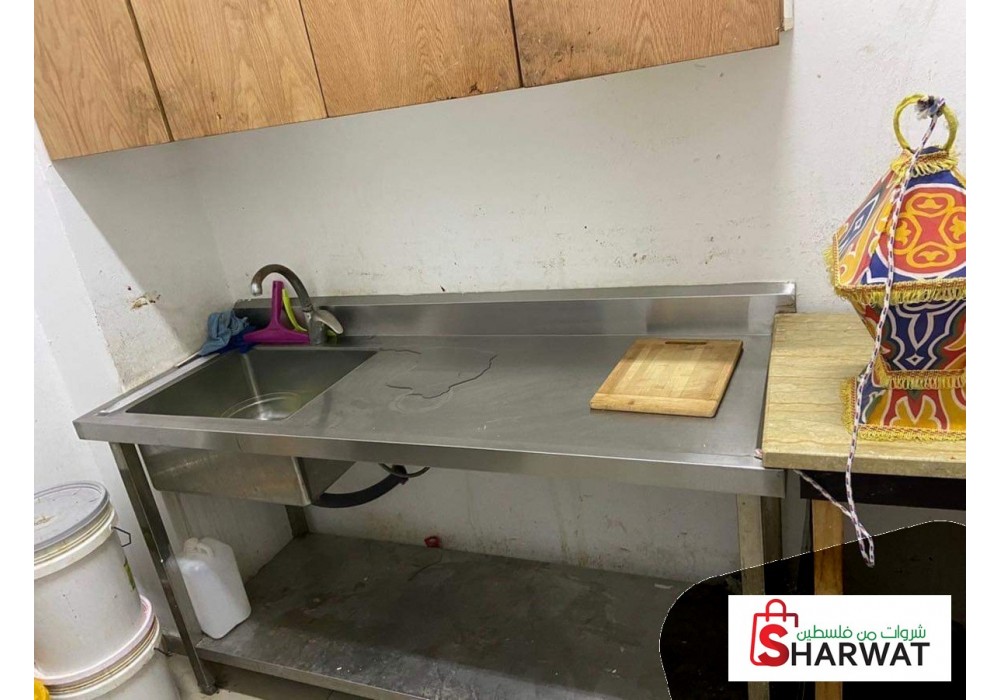 ثلاجة ، عجانه ، فترينه ، مغسلة حديد ، ادوات الفرن كاملة ، طاولة ،