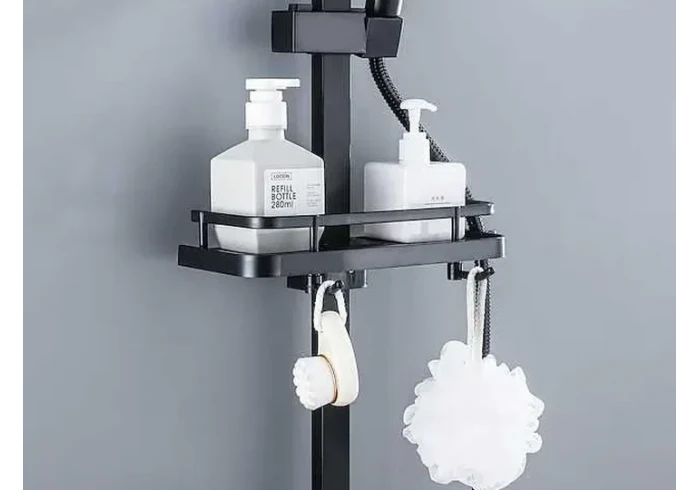 بالاضافة الى حامل للدش وحامل للصابون وعلاقة ليفةالاستحمام