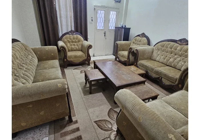 طقم كنب 9 مقاعد مستعمل بوضع جيد مع طاولة و 4 سكملات