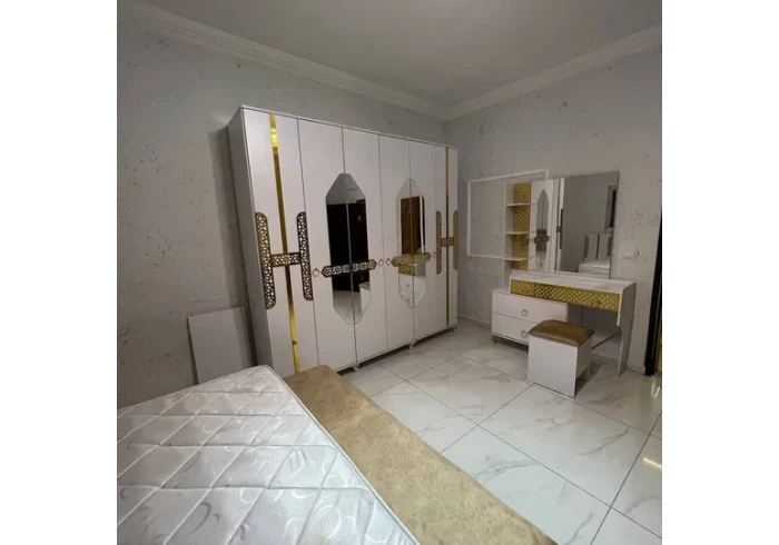 غرف نوم ابيض وذهبي