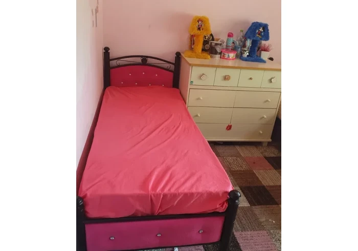 للبيع 2 تخت حديد منجد كما يظهر بالصور بالإضافة إلى خزانه عدد 2 .