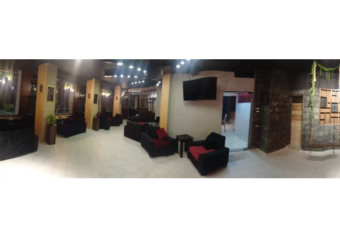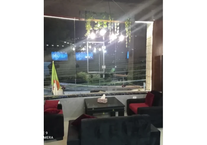 عفش كوفي شوب كنب شبه جديد مع طاولات واراجيل وماكنة تلج