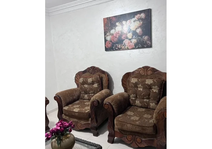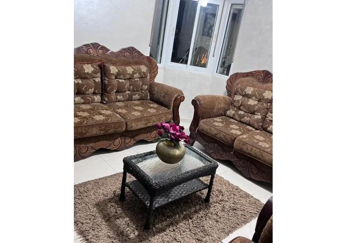طقم صالون خشب طبيعي مليان ومريح وبحالة ممتازة مع طاولة سفرة قابله للفتح.
