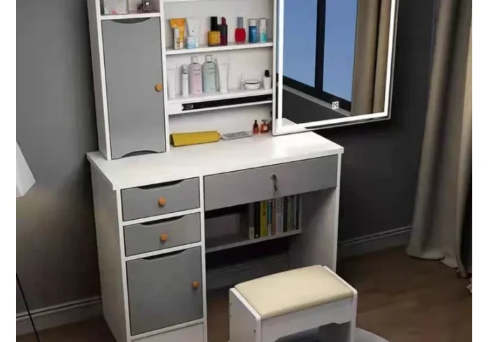 بنقدملك بيرو خشبية للفتيات مع مراه مضيئة وكرسي