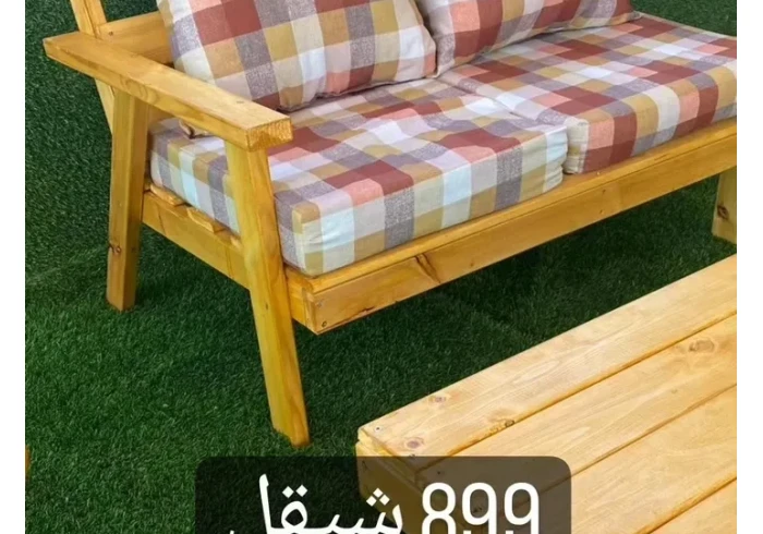 كراسي خشبيه للحدائق مجوزة و 2مفرد وطاولة وفرش فقط على 900شيقل