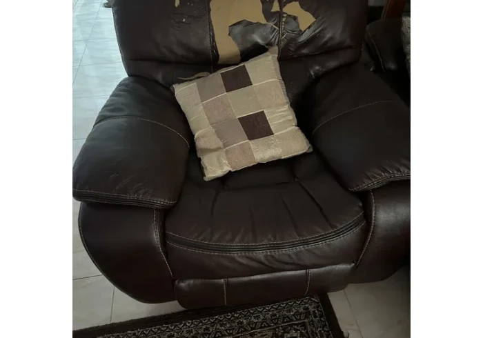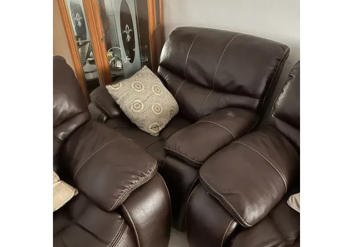 طقم كنب امريكي جلد ريكلاينر سبع مقاعد بحالة جيدة قابل للفتح مريح جدا