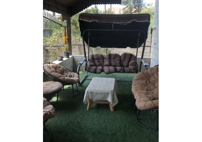 مقاعد واسكملة ومرجيحة مع فرشهم