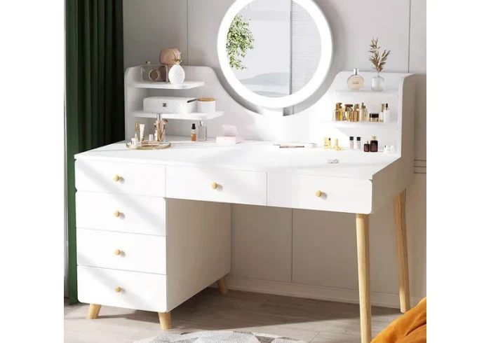 بنقدملك بيرو خشبية مع 6 جوارير للفتيات وبشكل رائع جدا مع مرأة مضيئة