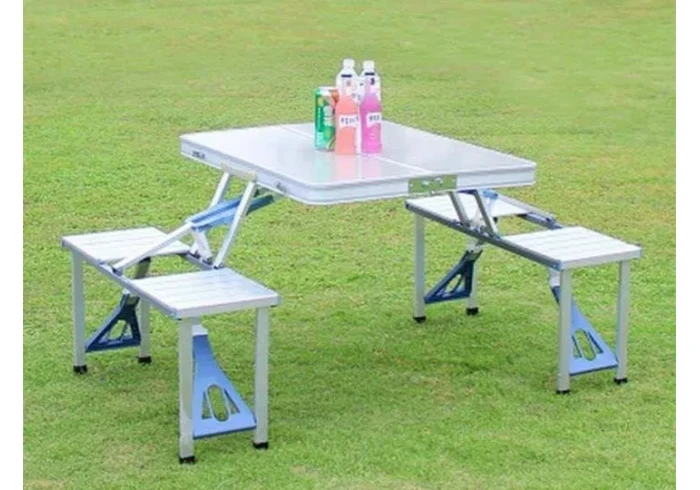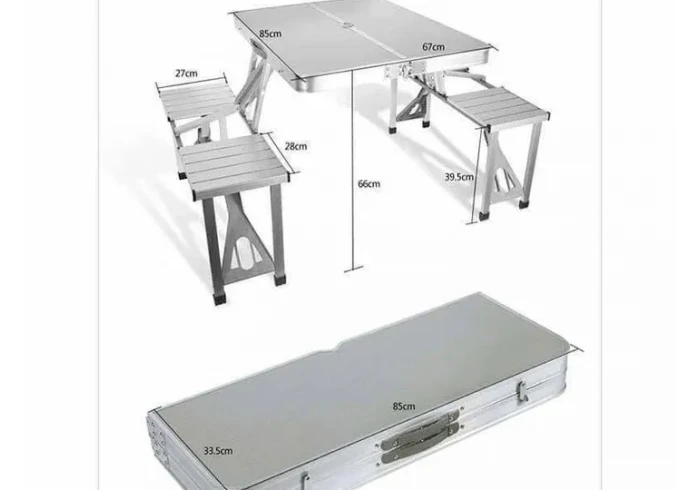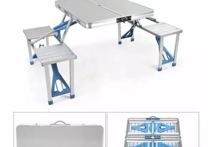 طاولة معدنية ع شكل شنطة مع اربع مقاعد ذات جودة عالية