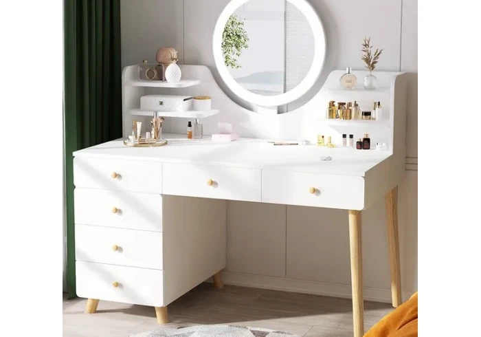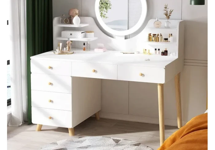 بنقدملك بيرو خشبية مع 6 جوارير للفتيات وبشكل رائع جدا مع مرأة مضيئة ?