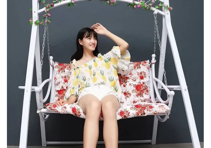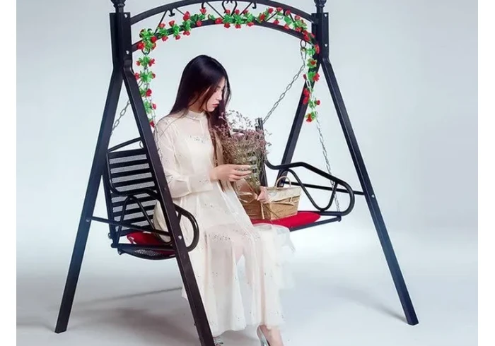 مرجوحة منزلية بتصميم جذاب مع فرش وحبل زينة مصنوعة من الحديد للاستخدام الخارجي والداخلي
