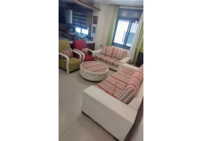 طقم صالون مع مزنون لون ابيض وطاولة سفرة