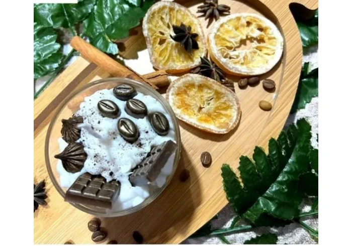 شمعة قهوة صنع يدوي بعلبة زجاج , معطرة برائحة القهوة وفواحة , ملاحظة : السعر يشمل الشمعة وحدها فقط بدون لوح الخشب .