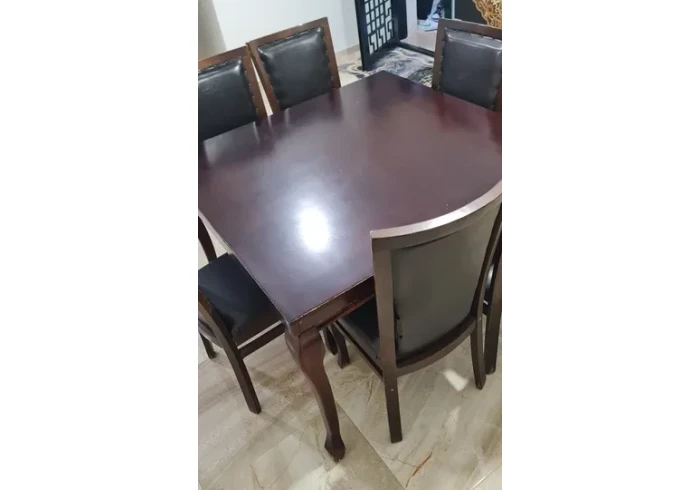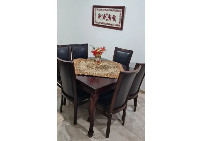 طاولة سفرة خشب زان جلد اصلي مربعة و يمكن فتح الطاولة لتكبير حجمها مع 6 كراسي.