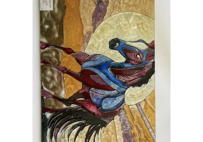 ((اللوحة تم رسمها على لوح زجاجي باستخدام الوان الزجاج ))