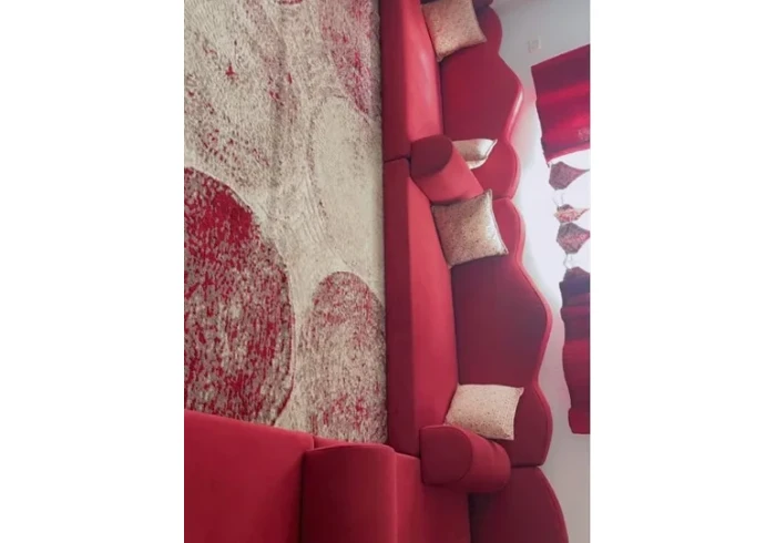 7 فرشات لون جمري قماشة مخمل مع مخددات بالوان مختلفة